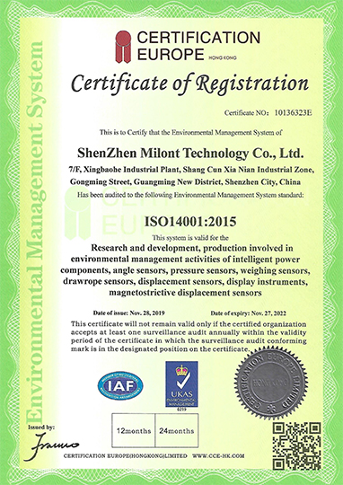Milont ISO environmental management system certification certificate