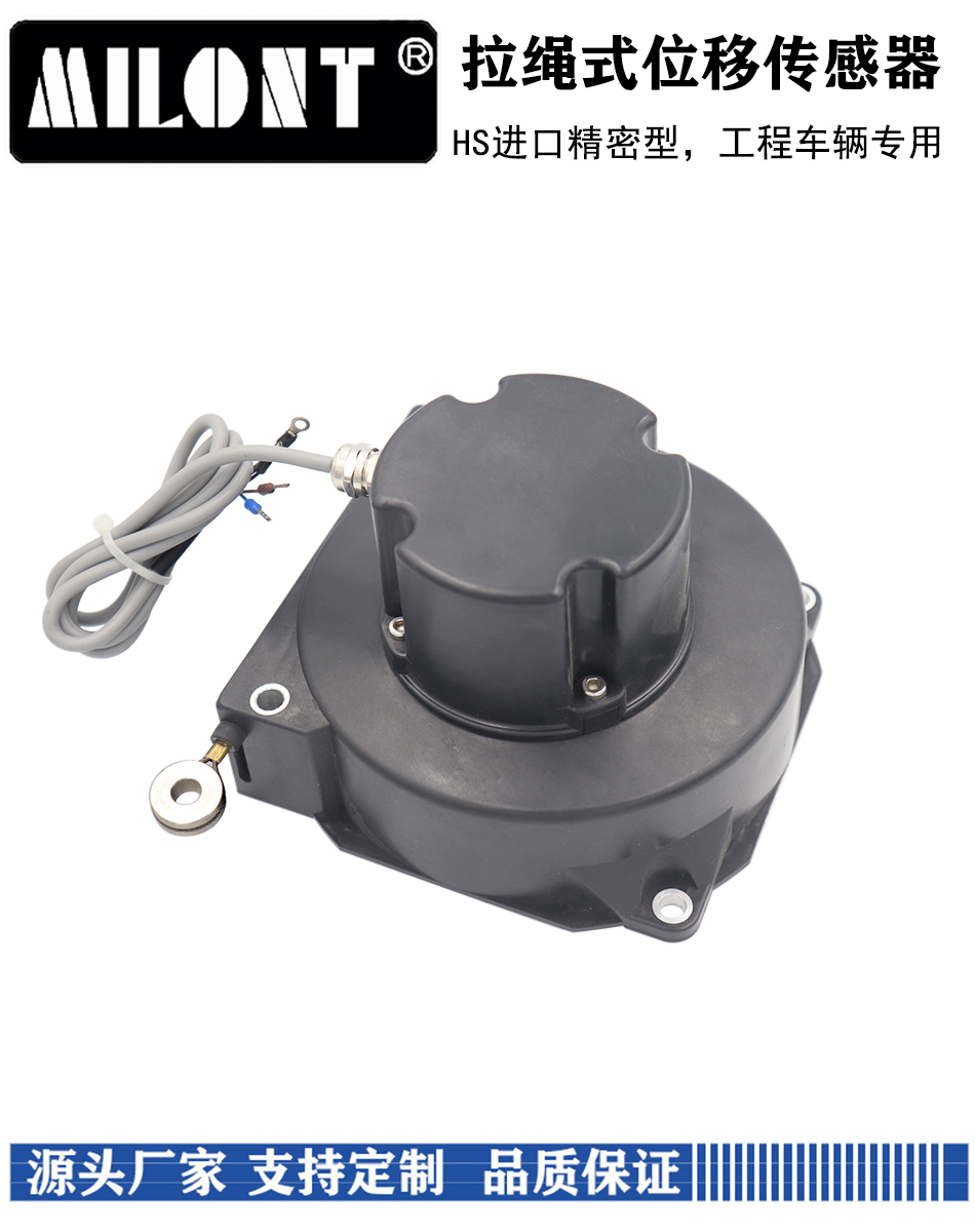 HS拉繩位移傳感器采用加粗拉繩(1.5mm與1.2mm),抗沖擊性能與耐磨性能較好,適用于吊車、水泥車、垃圾車等特種車輛位移測(cè)量與位置定位。